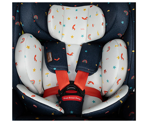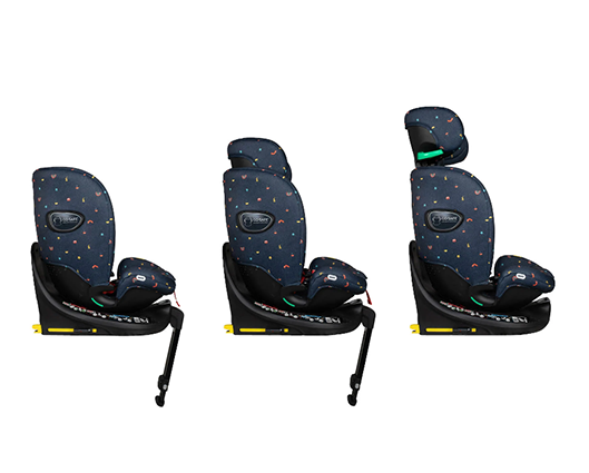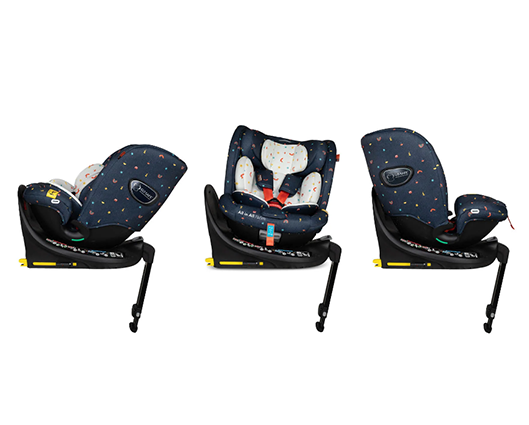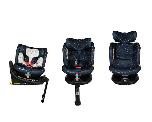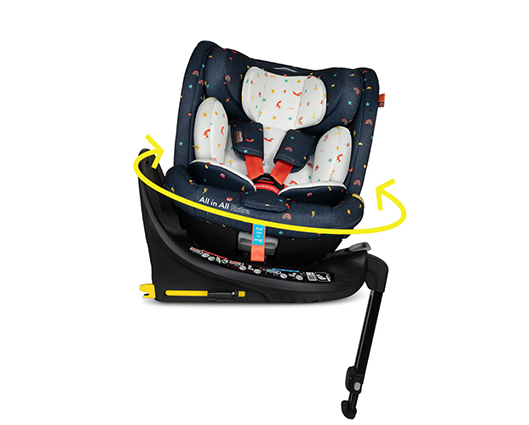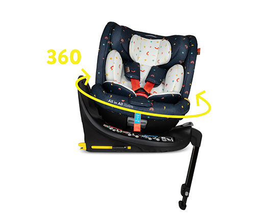 Introducing the All in All Extra i-Size 360 Car Seat Doodle Days The 40cm-150cm all-stage Extended Rear Facing ISOFIX car seat with seamless 360-degree rotation. Extra side-impact protection and anti-rebound board. - Complies with R129/04 safety standard - Tested in-line with ADAC levels of testing (which goes beyond R129/04) - i-Size All Stages Seat from 40cm-150cms / birth up to approx. 12 years old.) - Extended rearward facing to 105cm mode with easy rotation. - Forward facing from (76cm-150cm) - Converts into a high back booster seat (100-150cm approx. 4 – 12 years old) - Harness tested to a higher child weight of 20kg to grow with your child for extended safety - Fitted with premium SIPS (Side Impact Protection System) - Impact-absorbing foam inlays give further side impact protection to keep your child protected on every journey - Anti-rebound bar offers better protection in a collision, more leg space for your child and seamless 360-degree rotation - ISOFIX and support leg for simple and safe installation - Includes exclusive, patented 5 point plus anti-escape system (76cm to 105cm) - Seat rotates 360 degrees to make it easy to get your child in and out of the car - 4 recline positions in rear facing mode (40cm – 105cm/approx. birth to 4 years old) - 4 recline positions in forward facing mode (76cm-105cm) - Store the stow-away harness when swapping it from the 5-point harness to the adult seat belt. - Quick-release, easy-adjust, 5-point safety harness with anti-slip chest pads and tummy pads. - Removable multi-stage liner - Adjustable 11-position head restraint - Easily removable, machine washable fabric covers - Includes ‘tuck-in’ tool to make the covers easy to put back