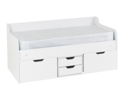 The Ovis Day Beds are designed to provide your home with an indispensable piece of space-saving occasional furniture.The Ovis Day Bed in white combines essential storage with the perfect place to sleep. 2 large and 2 smaller drawers are perfect for bedding or out of season clothes whilst the back rail allows you to place this bed against a wall without impinging on its usefulness. The clean white lines allow it to sit in any style of modern room.