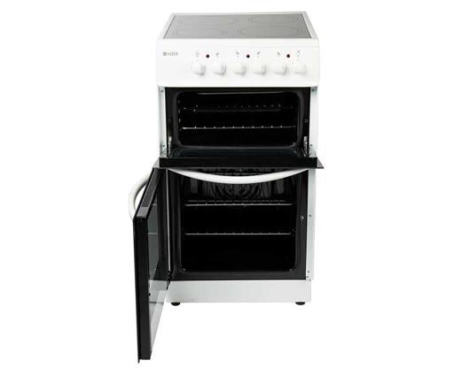 Our Haden freestanding cooker has a static top oven with grill, lower fan oven and double-glazed glass doors. It is functional and equipped with everything you need for all your cooking activities, from baking and roasting to grilling and stewing. The oven has easy grip-dials and an easy-clean enamel interior.