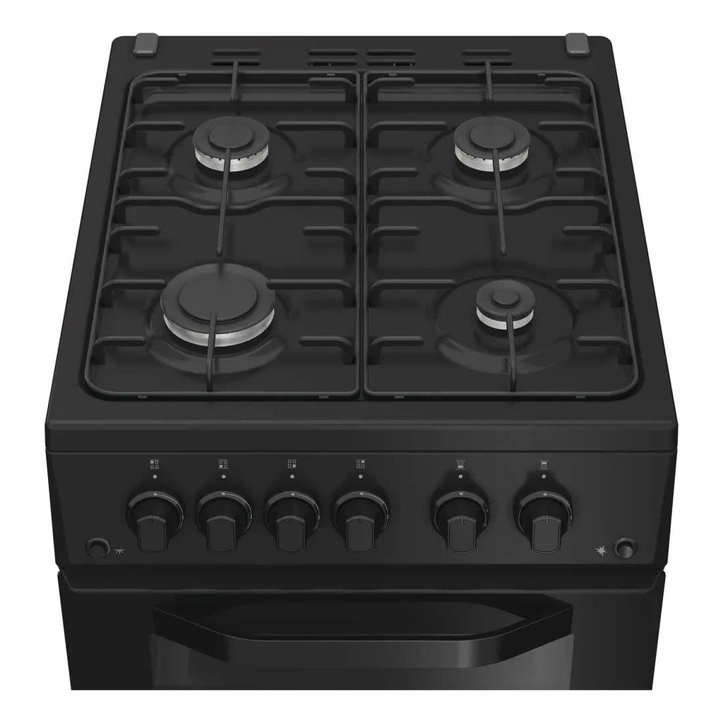 Thoughtfully designed with the latest technology and a timeless style, this Hotpoint freestanding cooker is the perfect addition to your kitchen. Finished in sleek black, it°s ideal for everything from hearty family favourites to adventurous new recipes. This 50cm width cooker has an impressive 59L main oven capacity, giving you plenty of space to cook with ease. The Fast Preheat setting gets your oven up to temperature in just 5 minutes, so you can start cooking without the wait. Plus, the oven light lets you check on your dishes without opening the door, keeping heat locked in for perfect results. The second grill cavity is also ideal for crisping, browning, and achieving golden, delicious finishes every time. The gas hob offers both convenience and stability, featuring durable enamel supports to keep pans secure. With Auto Ignition, the hob lights up instantly, while the Fast Boil function quickly brings water to the boil - saving time and energy. If you don't have access to natural gas, there's a handy kit to easily convert it to liquefied petroleum gas (LPG). On top of these great features, this cooker also has an A+ energy rating, delivering outstanding performance while maintaining excellent energy efficiency.
