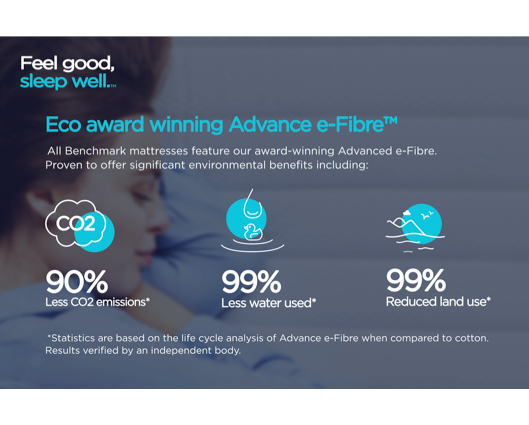 The Jay-Be Benchmark S3 offers responsive support. It's deep e-Spring core is topped with our revolutionary Memory e-Fibre which is a more environmentally friendly alternative to memory foam; offering the same pressure relieving support throughout the night.