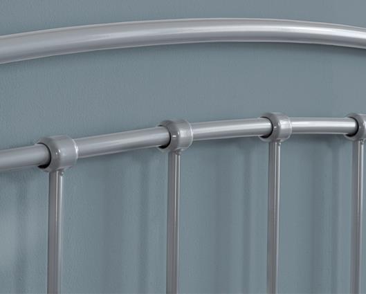 Modern design at its best, the Tobias features solid beech coloured rubberwood bed posts complemented by a striking silver finish. The steel frame is finished with an epoxy powder coated paint process and features a sprung slatted base with a natural bounce, adjusting to where pressure is most exerted, providing greater comfort. The maximum weight load for the 3' frame is 100 kg, all other frames is 250 kg. Please note: our beds are only suitable for a UK standard size mattress.