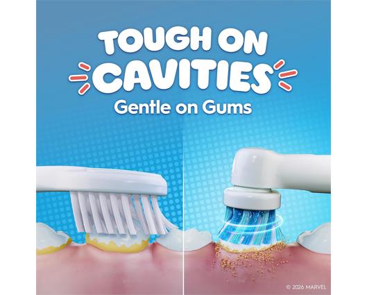 The Oral-B Pro Kids electric toothbrush, recommended by dentists for kids aged 3+, offers gentle and effective cleaning. With 2 brushing modes including a unique, kid-friendly sensitive mode, this brush gently cleans kids' teeth. It removes more plaque than a regular manual toothbrush. It includes 4 themed stickers are included to customise the handle.