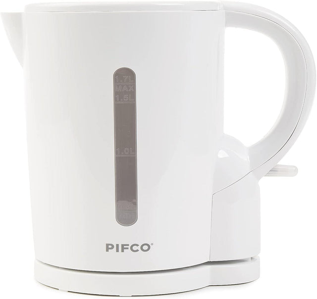 Give your kitchen the easy-to-use PIFCO 204677 cordless 1.7L kettle and enjoy your hot drink of choice. Thanks to the clear on/off indicator light and easy to read water gauge, heating your desired amount of water is simple while the cordless design and anti-slip feet makes this kettle convenient and secure. All this with a removable anti-limescale filter to keep your drinks clear and clean and finished in stylish gloss white.