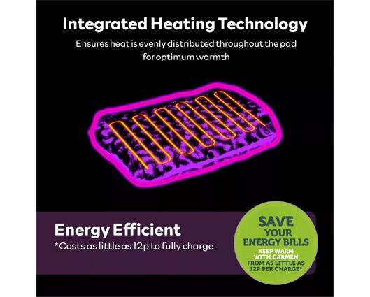 A safe, simple way to keep warm at home or in the office SAFE HEATING SOLUTION This rechargeable hot water bottle comes pre-willed with water already inside and permanently sealed so you never have to worry about refilling, leaks or scalding from boiling water LONG-LASTING WARMTH It heats up the water when powered on and unplugged to keep you warm in bed, retaining its temperature for up to 5 hours for long-lasting warmth and comfort overnight ENERGY EFFICIENT It costs as little as 12p to fully charge the Hot Water Bottle* based off 24p per kWh. Keep yourself warm and cozy as you snuggle up on the sofa and save on expensive energy bills. SUPER-FAST CHARGING Comes with a fast charging adaptor that can fully charge the battery in under 15 minutes AUTOMATIC TEMPERATURE CONTROL Provides a no-fuss way to warm up with automatic temperature controls to automatically maintain the perfect temperature, switching itself off after reaching approximately 70-75?°C for safe use and long lasting warmth SOOTHES ACHES & PAINS Acts as a heating pad to improve your blood circulation and can be used to alleviate pains from cramps, as well as relieve joint or muscle aches. The soft fleece cover and hand warmer pouch provide luxurious softness against your skin and offer supreme comfort THE PERFECT GIFT Ideal as a gift for a loved one or close friend as a reliable source of heat therapy or as a convenient and safe alternative to traditional hot water bottles 3 YEAR GUARANTEE Professional Carmen quality with a 1 year guarantee & optional 2 year extension, subject to product registration online Make bedtime even cosier with this Rechargeable Hot Water Bottle from Carmen. Safe and simple to use, it comes pre-filled with water and permanently-sealed so you never have to refill with boiling hot water or worry about leaking. Charging faster than a phone in under 15 minutes, it’s almost instantly ready for overnight use and keeps the water warm while unplugged for up to 5 hours. It only costs as little as 12p* to fully charge the Hot Water Bottle, keeping yourself warm and cozy, while you snuggle up on the sofa and save on expensive energy bills. The heat also has fantastic health benefits – not only keeping you warm in winter – it also helps soothe cramps, aches and pains, as well as improve blood circulation for longer-lasting comfort. Automatic temperature control provides the optimal amount of heat up to 70-75°C, while overheat protection ensures safe use. Designed using soft, comfy material and with a built-in pouch to keep your hands warm, this electric hot water bottle is made for a warmer, more comfortable night’s sleep. *(Based off 24p per kWh)