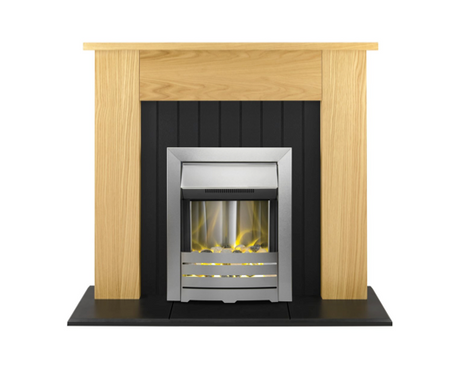 Chester Fireplace Suite 48inch - Oak With Electric Fire - Brushed Steel