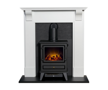 Shelby WM-9332 Electric Wall Fireplace Suite with Downlights & Remote in Pure White