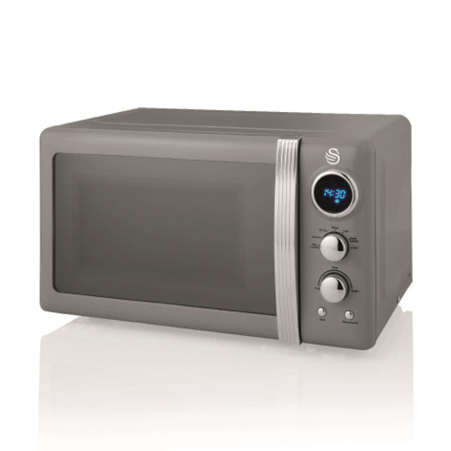 QUICK, FUSS-FREE COOKING Whether you're reheating leftovers or cooking a ready meal, this 800W microwave features 5 different power levels to make your mealtimes fast and fuss-free. DEFROST FOOD FASTER If you're pressed for time during food prep and need something thawing quickly, then the handy defrost function will help save you valuable cooking time. LARGE 20 LITRE CAPACITY This digital microwave is great for all the family, with its large 20 litre capacity and 270mm glass turntable being able to hold any standard sized dinner plate. MULTIPLE PRE-SET COOKING OPTIONS Take the guesswork out of cooking with the auto-cook function. It features 12 pre-set options for different food types, which sets the correct time and power setting for perfect results. THE RETRO COLLECTION The Swan Retro collection blends both style and functionality. It features a diverse colour palette inspired by the chic 1950s and 1960s to compliment all decors. Transform and inject new life into your everyday kitchen items.
