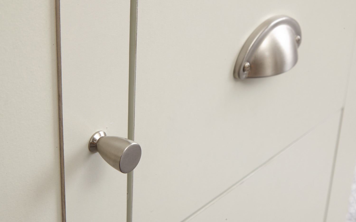 An elegant storage solution for the living or dining room. The Lachlan Multi Unit , with its matte grey or cream finish and oak veneered top matches perfectly with the rest of the Lachlan range and features three handy drawers with satin silver handles and a spacious cupboard fitted with satin silver knobs.