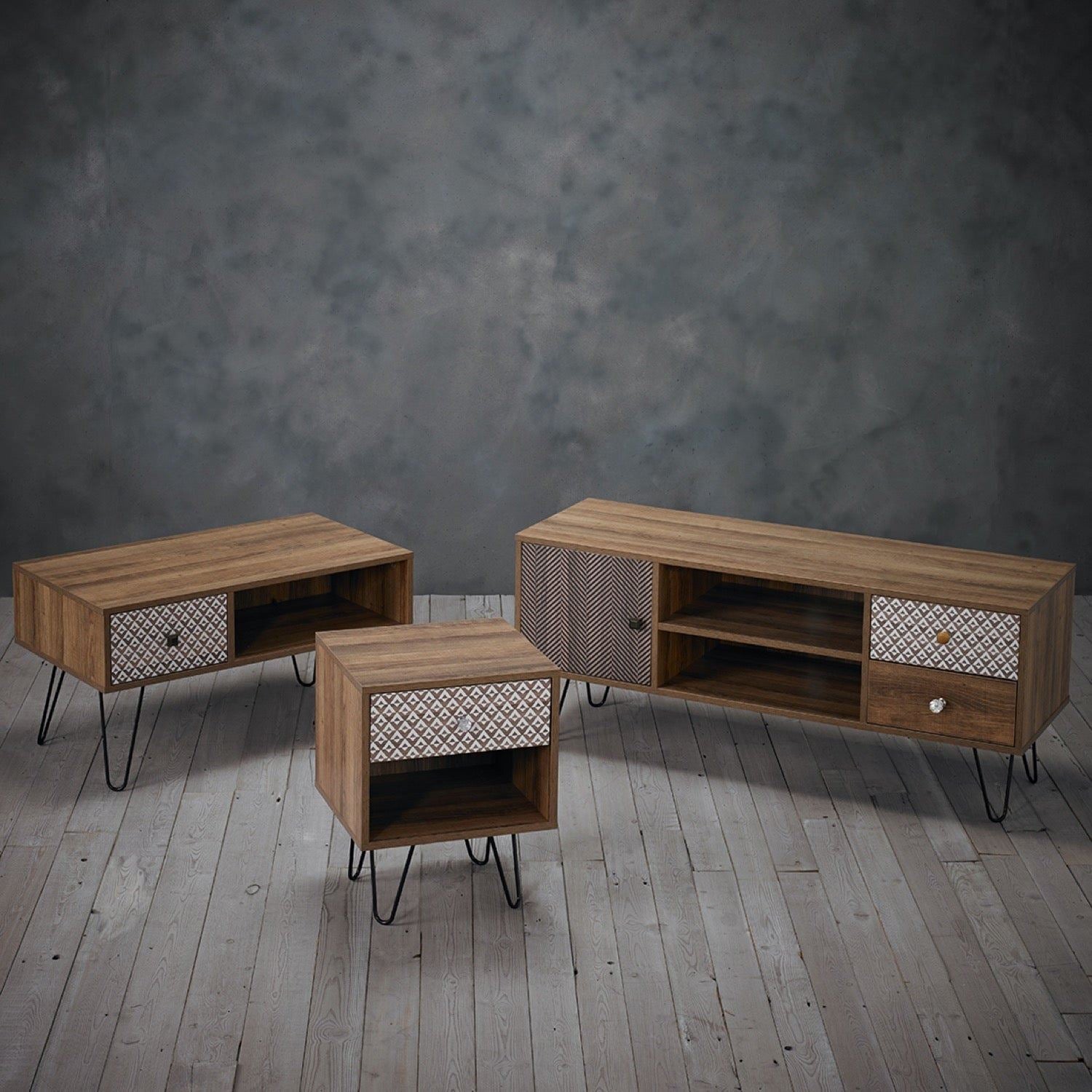The Casablanca Coffee Table stands on black wired legs and contains one drawer and one shelf space to conveniently hide all your bits and bobs in your living space. The Coffee Table is constructed from particle board with a wood effect finish. The Casablanca consists of foils and prints to create a quirky look to a traditional piece of furniture which adds a contemporary feel to all interior. The classic colours used in the effects means that even though the obscure design will make a stylish statement in your home, the Casablanca will always work and will never fail to be missed by all your guests!