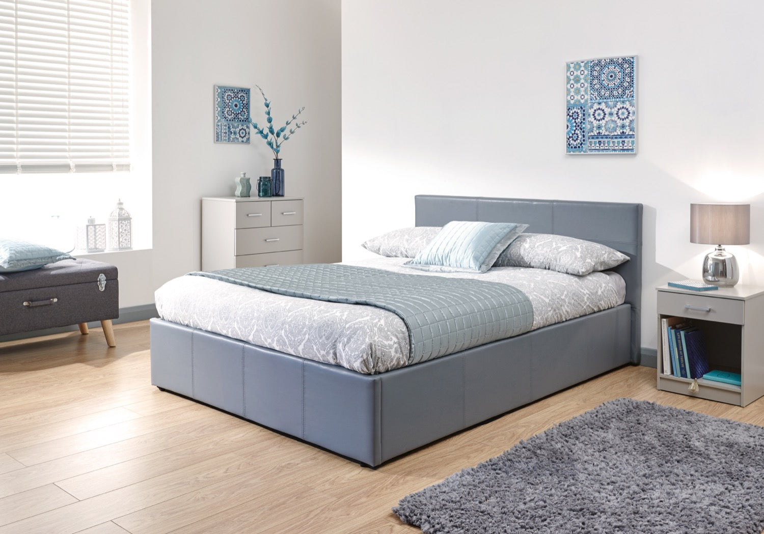 This stunning Small Double end lift ottoman bed offers an attractive combination of contemporary style and ample storage space. This beautifully crafted frame is finished in high quality hopsack fabric and is complemented by a simple yet stylish stitched headboard. This is an ideal solution if space is at a premium in your bedroom as the ottoman base provides generous storage space for linen, blankets, towels or clothes. The base lifts easily with the help of a gas hydraulic system so you can access the lined storage area underneath the bed.